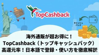 【画像付き】TopCashback(トップキャッシュバック)の登録方法から、日本語での検索・使い方、Paypalへの引き出し方法まで完全ガイド。150%還元など高還元率の仕組みや、ポイントが付かない時の対策も解説。「登録できない」と悩む前にまずはこの記事をチェック!